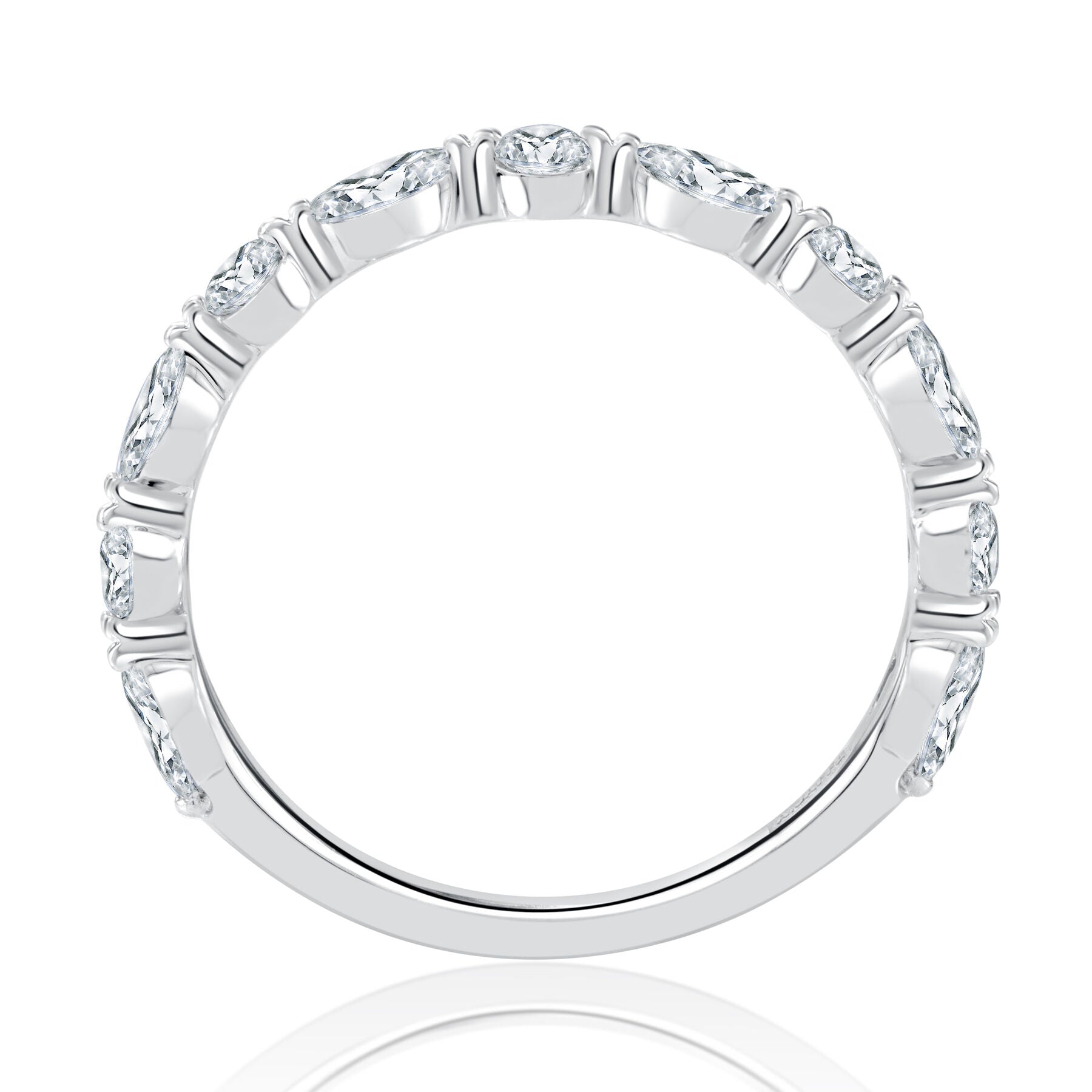 This alternating round and marquise diamond stackable ring features a beautiful combination of round and marquise diamonds set in an alternating pattern, creating a bold yet delicate design. Perfect for stacking or wearing alone, this ring symbolizes timeless elegance and versatility. (0.67ctw, G, SI, 14kw, size 6)