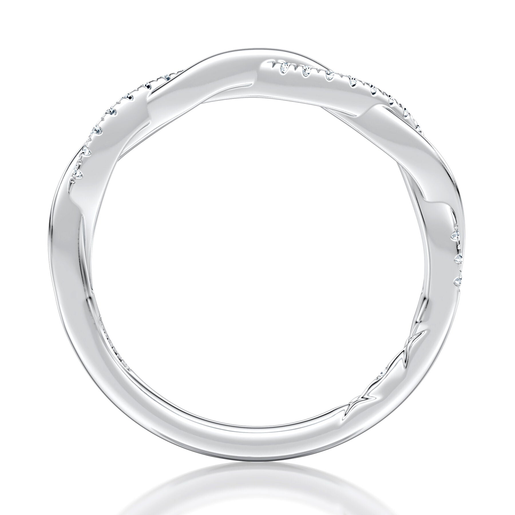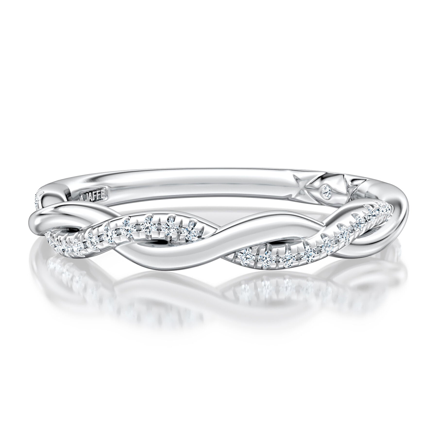 This diamond crossover band design from A JAFFE makes a visually striking design. The perfect combination of timeless elegance and modern style, this band symbolizes lasting love and commitment.